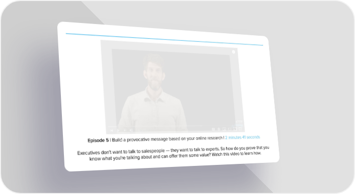 Episode 5 | Build a provocative message based on your online research | 2 minutes 41 seconds Executives don't want to talk to salespeople --- they want to talk to experts. So how do you prove that you know what you're talking about and can offer them some value? Watch this video to learn how.